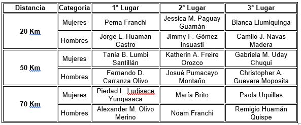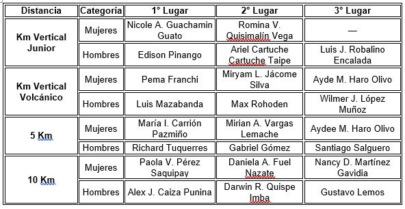 A continuación, se presentan los resultados oficiales de los ganadores en cada categoría: