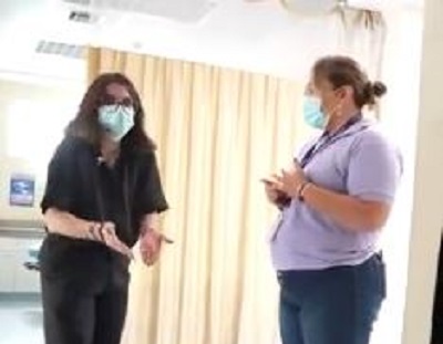 En el intercambio con una funcionaria del centro, la funcionaria, entre tartamudeos quiso expresar la falta de citas médicas y la ausencia de personal. Sin embargo, Pinto respondió que el sistema claramente no funcionaba y que los usuarios no recibían siquiera una orientación básica.