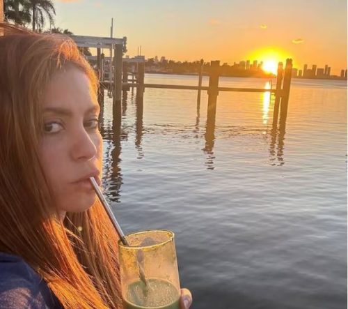 Además de dejar a sus seguidores intrigados por los proyectos en los que está trabajando junto a AC, la intérprete presumió su belleza al natural, ya que se dejó ver radiante con el atardecer como telón de fondo. Shakira deslumbró con el cabello lacio, poco maquillaje y un look supernatural, destacando sus bellas facciones, además de su linda sonrisa. La intérprete se mostró con un look cómodo; una t-shirt azul y unos pantalones claros.